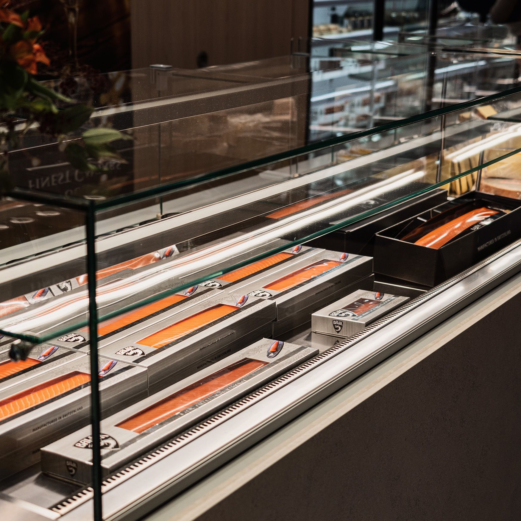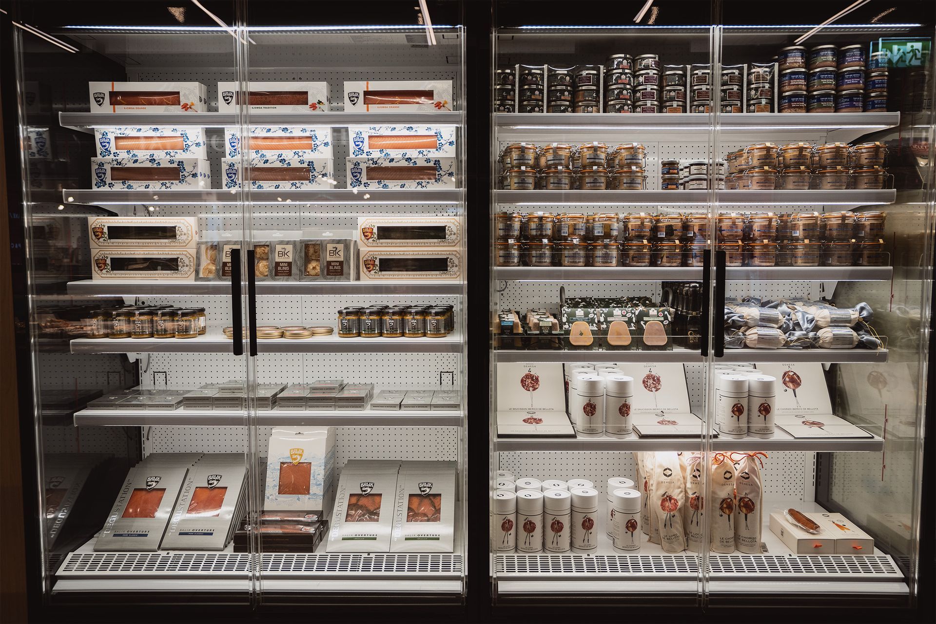 En plus de notre sélection de caviars, nous proposons également une gamme de vins fins et de spiritueux soigneusement sélectionnés, la gamme de saumon Balik, une large palette de produits d'épicerie fine, de spécialités diverses et une sélection de fromages d'exception.